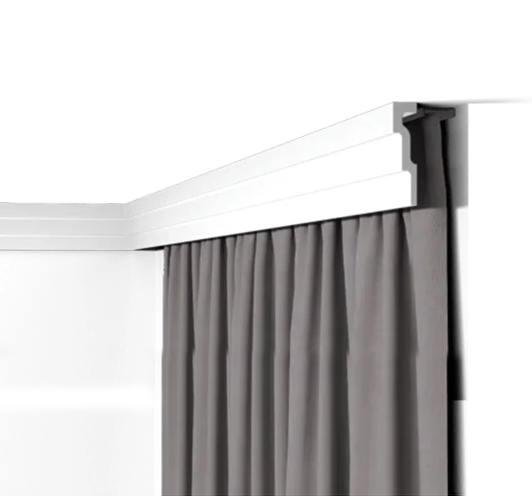 La Cornisa Nomastyl GO es una cornisa decorativa y funcional para la transición entre el techo y pared fabricada con poliestireno. Alto: 8cm Espesor: 8cm Largo: 2 Metros PRECIO X VARILLA