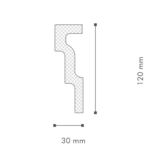 La cornisa Nomastyl F es una cornisa decorativa y funcional para la transición entre el techo y pared fabricada con poliestireno. Alto: 3.3cm Espesor: 3.3cm Largo: 2 Metros PRECIO X VARILLA