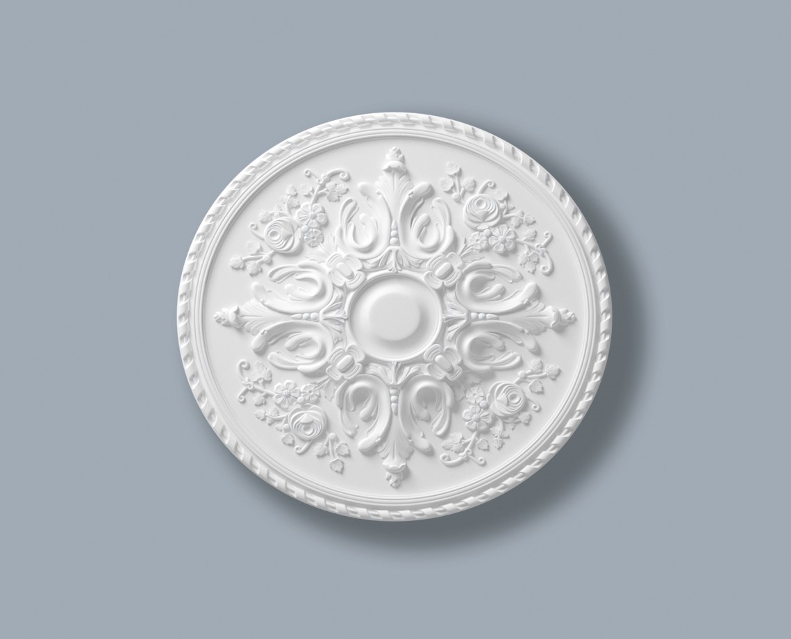 Rosetón R12 decorativo para techo o aplicaciones en pared, material de poliestireno expandido.